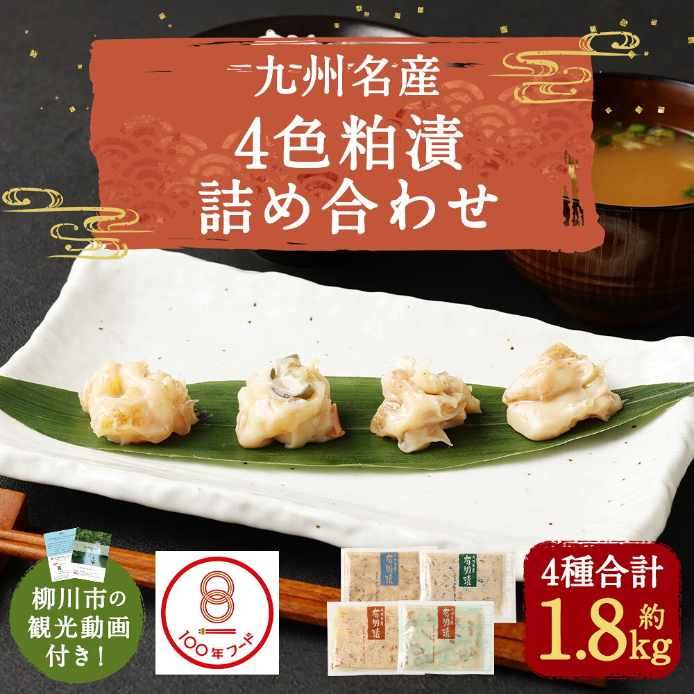 - 【ふるさと納税】4色粕漬詰め合わせ 合計約1.8kg 4種類 小分け 貝柱・海茸・数の子・野菜 粕漬 おつまみ おかず 観光動画付き 冷蔵 送料無料