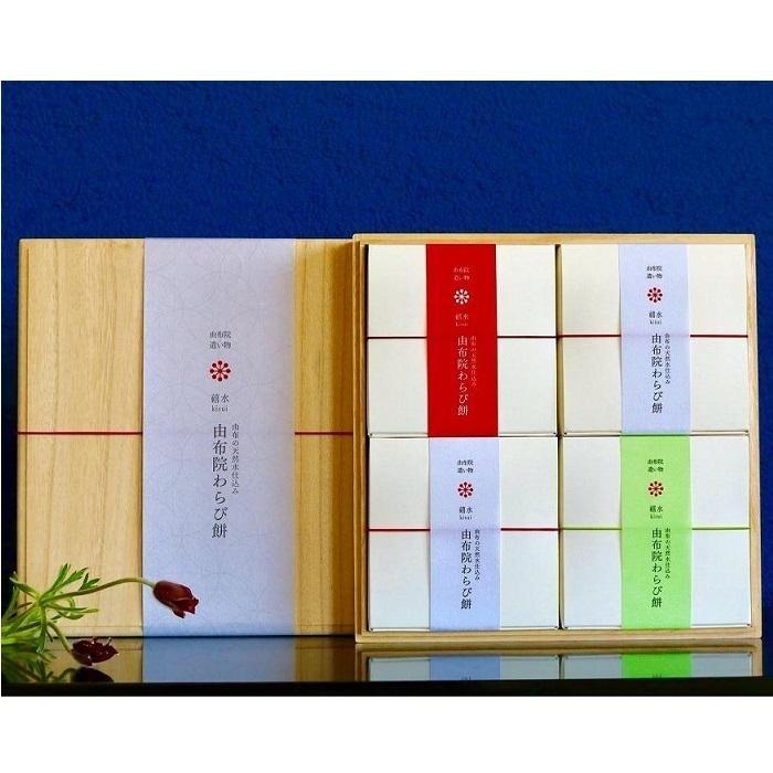 - 【ふるさと納税】【お歳暮】名水ゆふの水仕込み 由布院わらび餅4個詰め合わせ(桐箱入り)(きな粉2、抹茶1、黒糖1) | 年内発送 取り寄せ グルメ お取り寄せスイーツ スィーツ わらび餅 わらびもち 和菓子 お菓子 和スイーツ 湯布院 由布院 ゆふいん