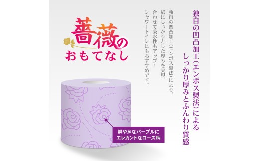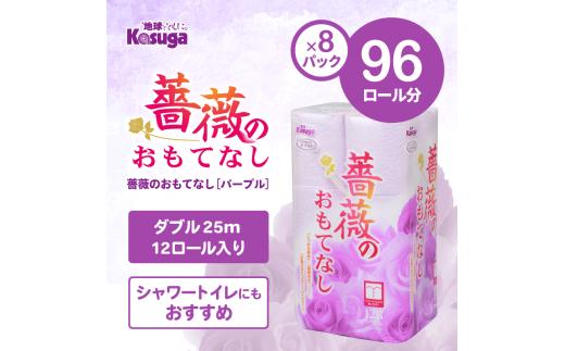 トイレットペーパー 薔薇のおもてなし ダブル 96ロール (12R×8パック) 超吸水 ふんわり 肌にはりつきにくい シャワートイレにも 薔薇の香り パープル 柄・色付き 消臭 再生紙 まとめ買い 防災 備蓄 日用品 消耗品 生活用品 富士市 [sf023-016]