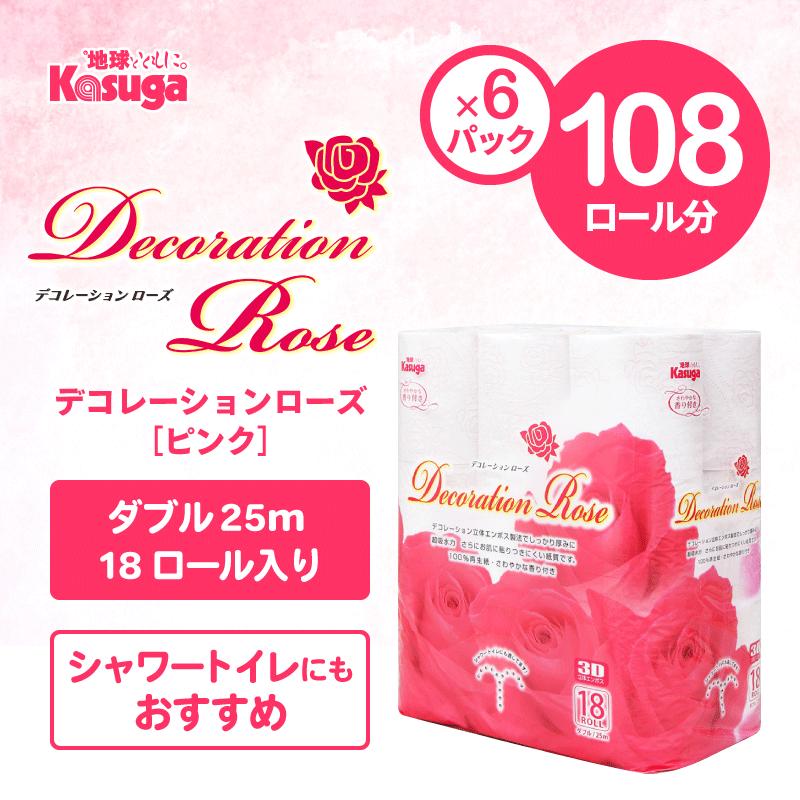 - トイレットペーパー デコレーションローズ ピンク 108ロール (18R×6パック) ダブル ふんわり感 吸水性 古紙 大容量 まとめ買い 備蓄 防災 日用品 消耗品 柄・色付き 香り付 108個 富士市 [sf023-025]