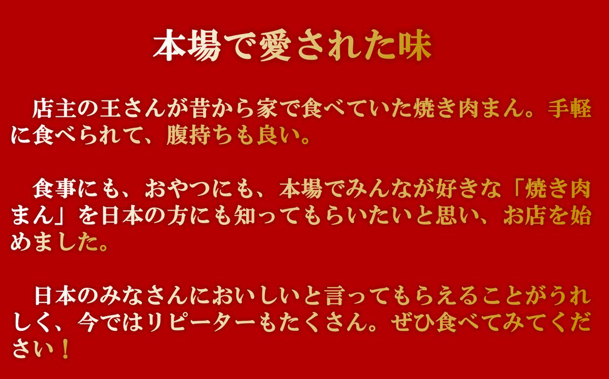 王 焼き肉まんの「焼き肉まん10個(5個×2袋)セット」(09-42) 手作り 肉まん 本格 点心 中華 国産 添加物不使用 おやつ 手軽 冷凍食品<br><br>