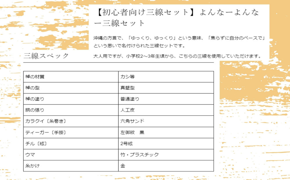 - 沖縄三線初心者用10点セット「よんな~よんな~」