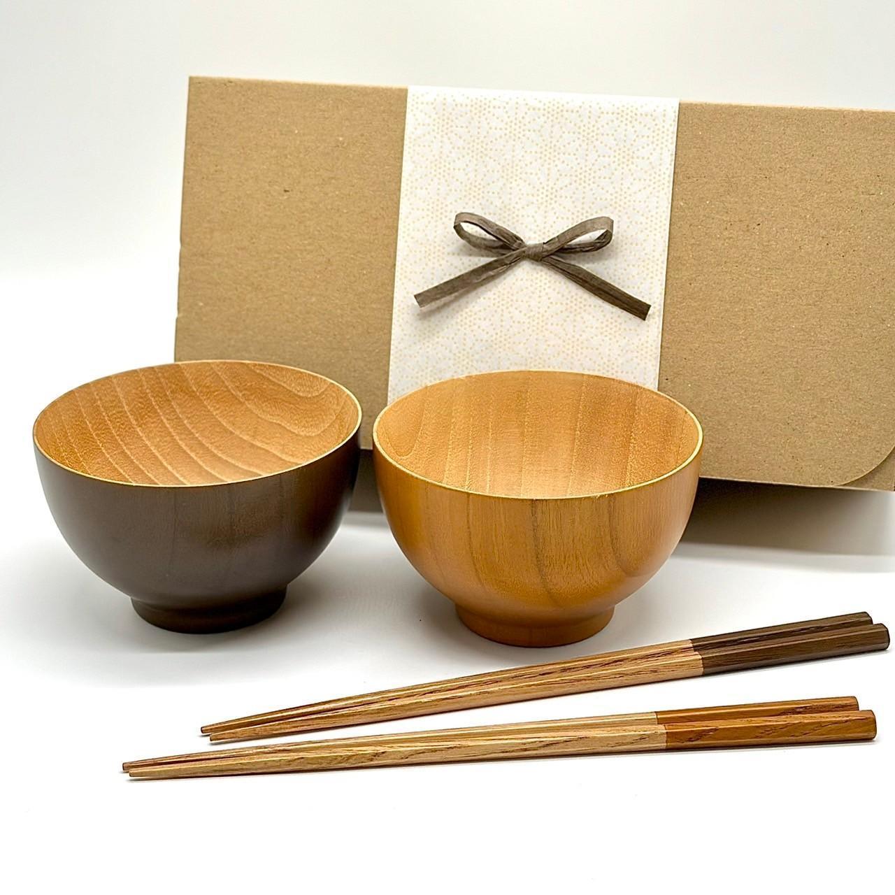 - ギフトボックス付き ペア ナチュラルボウル ブラウン 2個セット 箸付き 303446_CR179