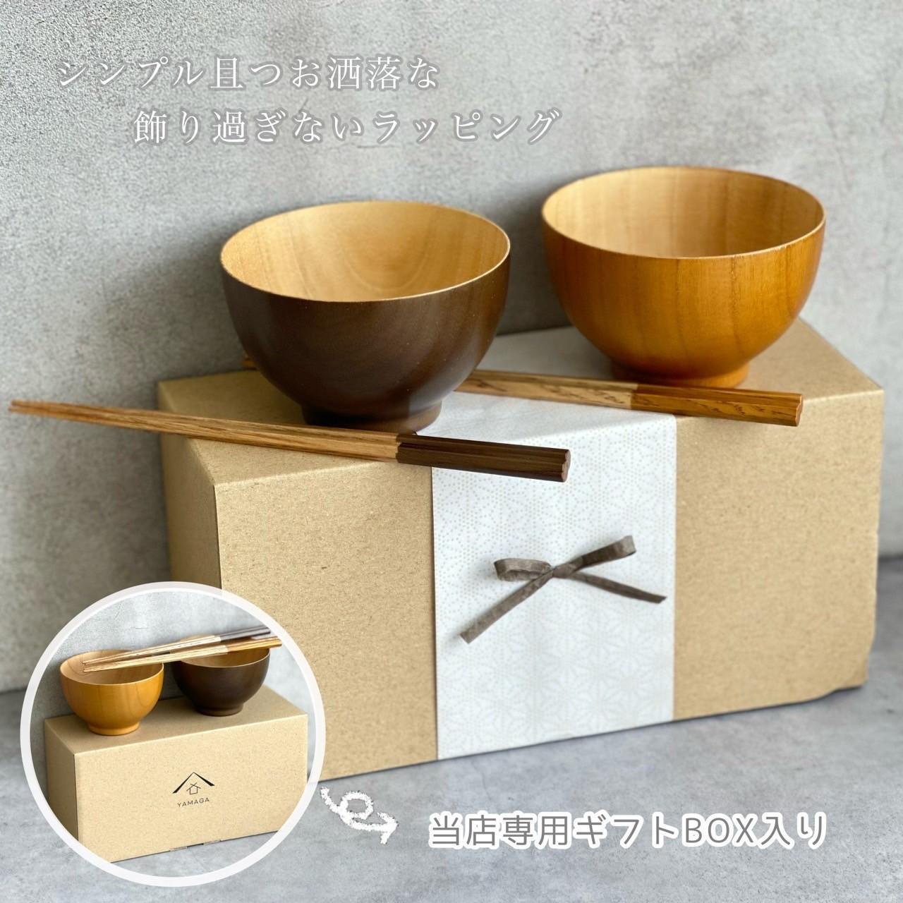 ギフトボックス付き ペア ナチュラルボウル ブラウン 2個セット 箸付き 303446_CR179