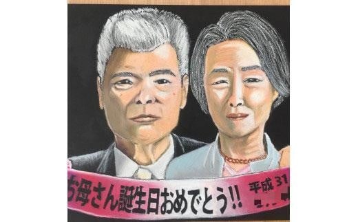 チョークアート似顔絵(A3サイズ)藍染め 肖像画 記念品