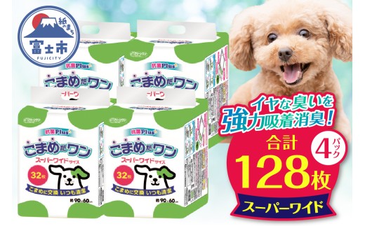 - ペットシート 「こまめだワン」 スーパーワイド 128枚 (32枚×4パック) こまめに交換 いつも清潔 抗菌 消臭 薄型 ペットシーツ トイレシーツ ペット用品 ペット 犬 日用品 消耗品 クリーンワン 富士市 [sf002-020]
