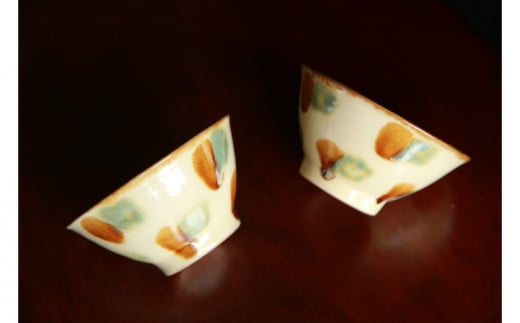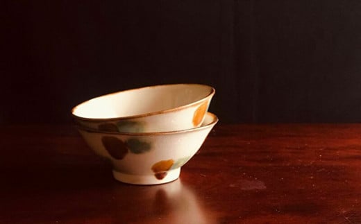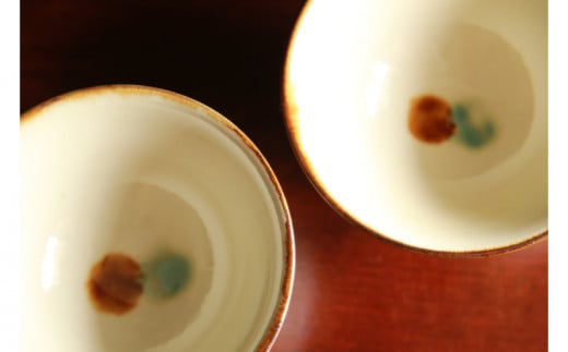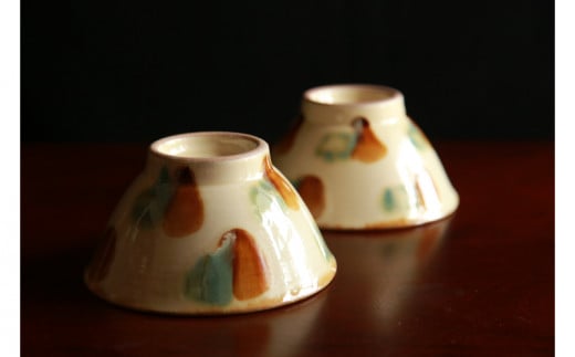- 【仲間陶房】4寸マカイ(三彩)ペアセット ☆ 沖縄県 読谷村 伝統工芸品 仲間功 12cm 陶器 贈り物 人気 お茶碗 器