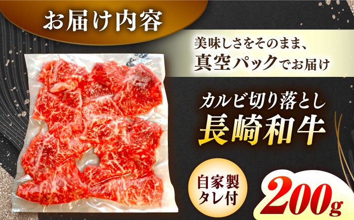 【自家製ダレ付】 長崎和牛 カルビ切り落とし200g (A4またはA5ランク) 長与町/炭火焼肉あおい [EBW028]