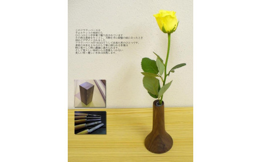 【ウォールナット材の木製フラワーベース・ラッパ型(FV-013)】オイルフィニッシュ 一輪差し 花瓶 木製 小物 置物 MUKU屋 MUFactory