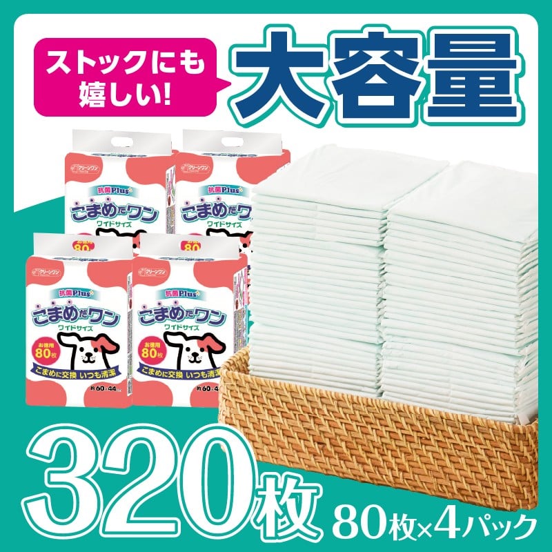 - ペットシート 「こまめだワン」 ワイド 320枚 (80枚×4パック) こまめに交換 いつも清潔 抗菌 消臭 薄型 ペットシーツ トイレシーツ ペット用品 ペット 犬 日用品 消耗品 クリーンワン 富士市 [sf002-019]