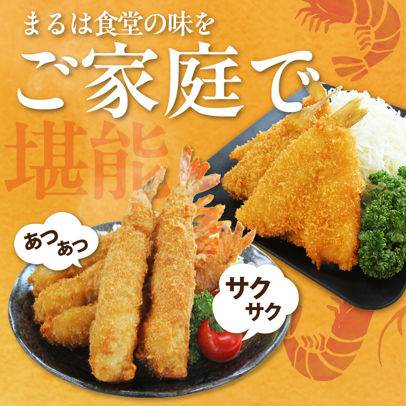 まるは食堂「エビフライ」「キスフライ」大盛セット