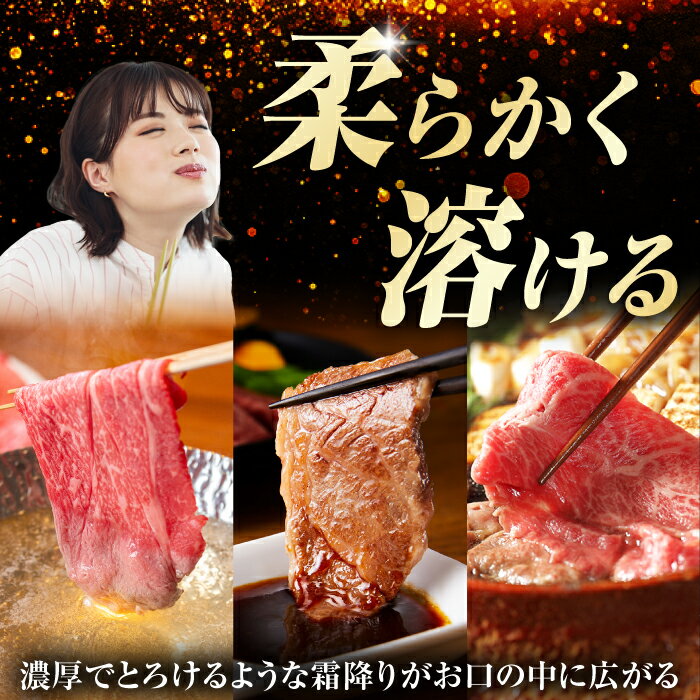 【ふるさと納税】鹿児島黒毛和牛の3種(焼肉・焼きスキ・メガロース、合計1.5kg・自家製わりした付)セットB! A4等級以上 牛肉 肉 国産 牛 ステーキ すき焼き 焼き肉 九州 黒毛和牛 和牛 牛丼 ロース 焼きすき【バクロ】