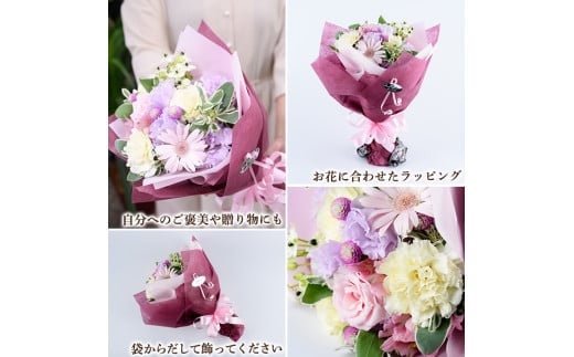 プロにおまかせ!フラワーブーケ(一束:約高さ35cm幅30cm) 花 ギフト プレゼント 生花 花束 記念日 お祝い <離島配送不可>【ksg1534】【花のふじせ】
