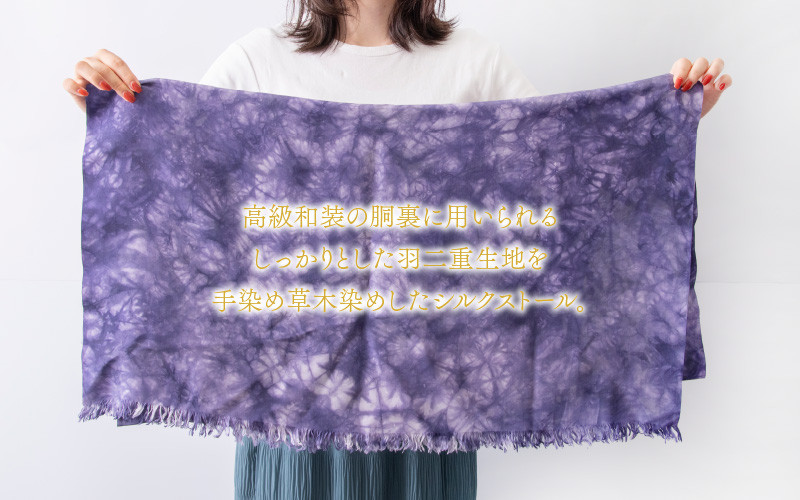 草木染め羽二重ストール 紫 叢雲染め [C-053003]