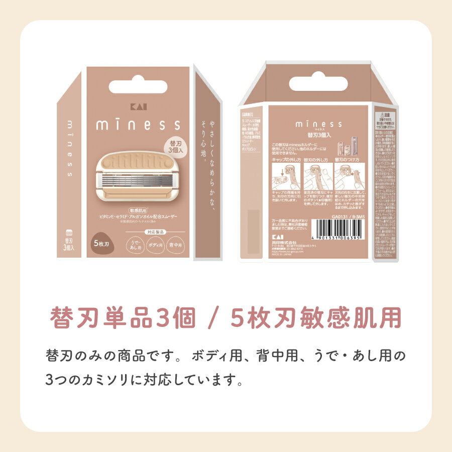 【ふるさと納税】貝印 miness 替刃3個入 ボディ用、背中用、うで・あし用共通 部位別設計でなめらかな剃り心地 マイネス ケア 剃刀 かみそり