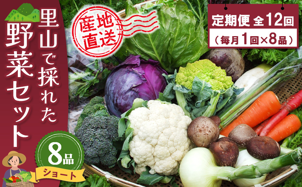 - 年間定期便12回 里山で採れた野菜セットショート 8品 【有機野菜 おまかせ野菜セット イタリア野菜 西洋野菜 定期便】(H078137)