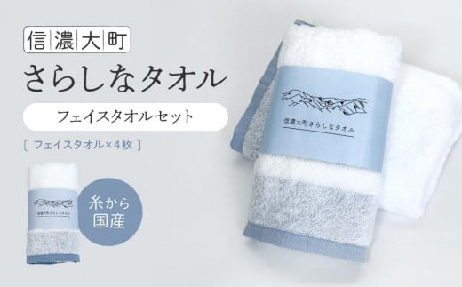【糸から国産】信濃大町さらしなタオル (フェイスタオル) 4枚