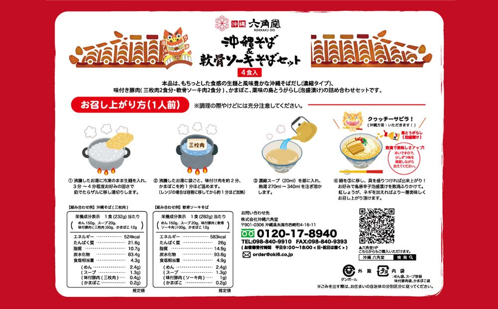 - 沖縄そば&軟骨ソーキそばセット 4食入り