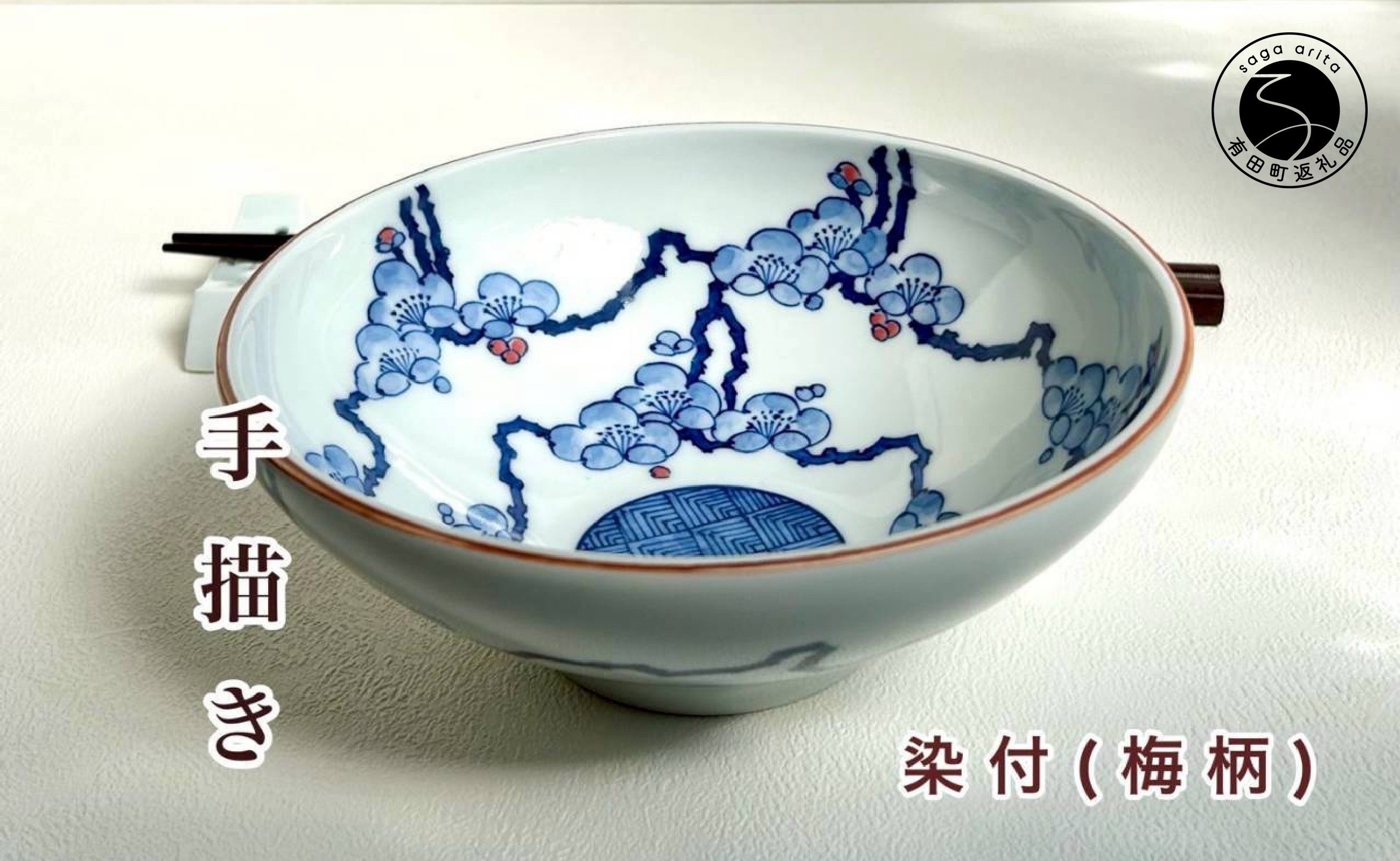 - 有田焼 手描き梅柄中鉢【起山窯】食器 器 うつわ 鉢 ボウル 染付 A20-576