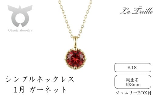 - シンプルネックレス K18【1月:ガーネット】