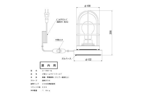 マリンランプ「2型ルームライト【ゴールド】白熱球付き」 [No.983-01] / 真鍮 砲金製 ハンドメイド 重量感 船 照明器具 ライト インテリア 岐阜県