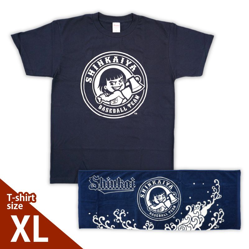 - 新海屋硬式野球部 チームロゴ入りTシャツ XLサイズ・タオルセット N018-YZC411-04