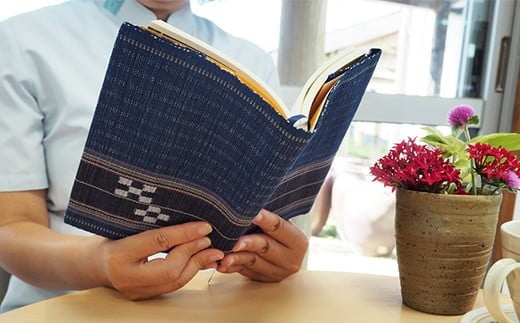 みんさーブックカバー(ずらし絣・紺)AZ-32-2