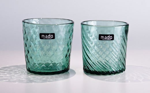 - madoロックグラス(ダイヤ柄・モール柄)2個セット アイスグリーン