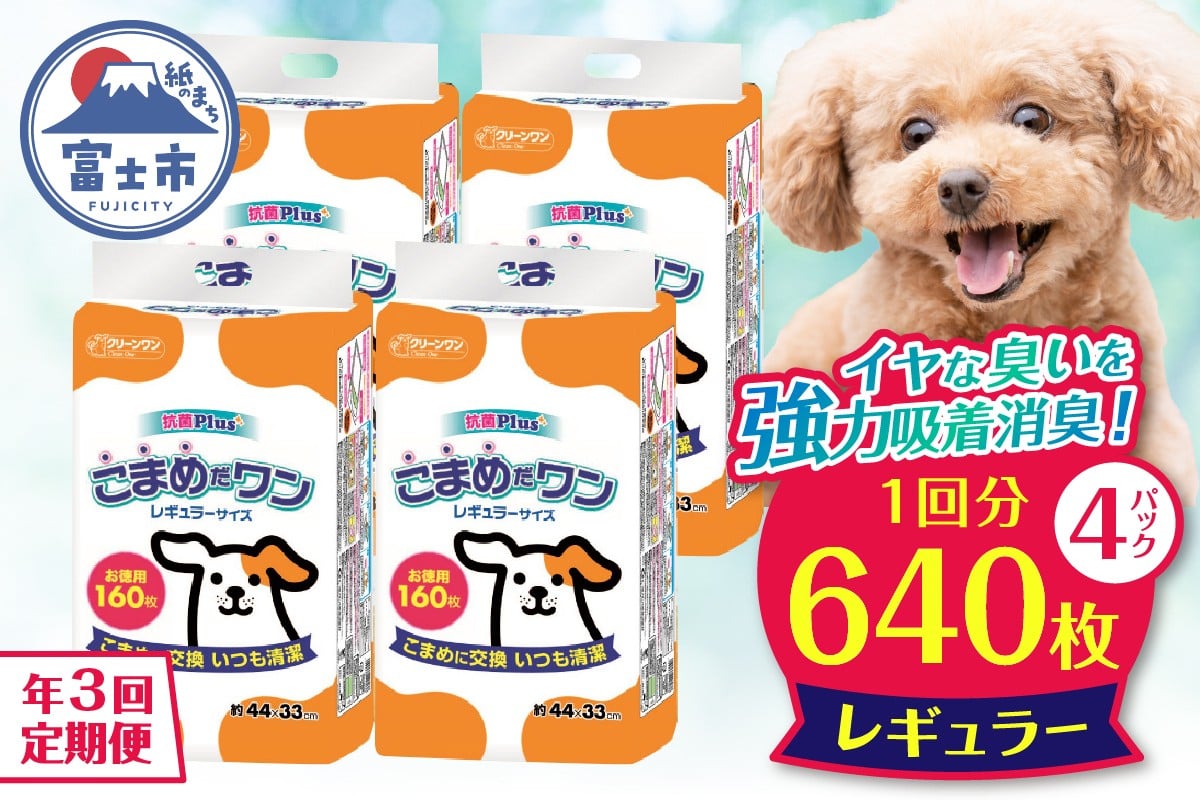 - 定期便 年3回 ペットシート 「こまめだワン」 レギュラー 640枚 (160枚×4パック) ×3回 こまめに交換 抗菌 いつも清潔 薄型 ペットシーツ クリーンワン シーズイシハラ 富士市 ペット用品 日用品 [sf002-278]
