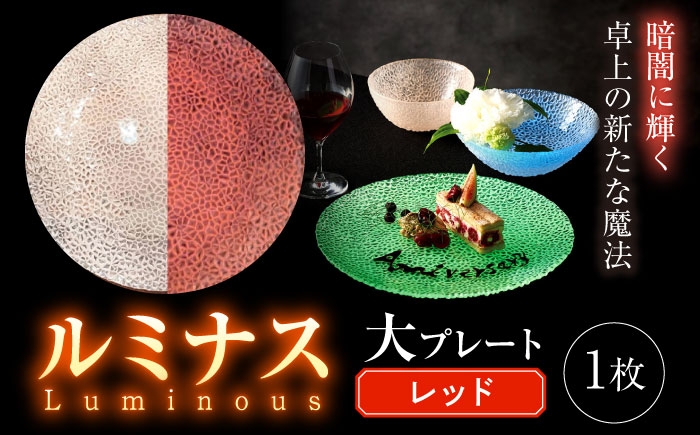 - ルミナスシリーズ プレート (大) レッド 【暗闇に輝く、卓上の新たな魔法】 多治見市 / 丸モ高木陶器 ガラス 皿 食器 [TBA216]