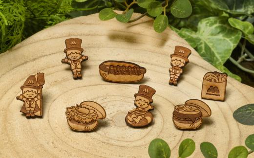 - 森からうまれたリルモスのピンバッジ 間伐材使用 リルモス(バーガー)&オニポテ ver.