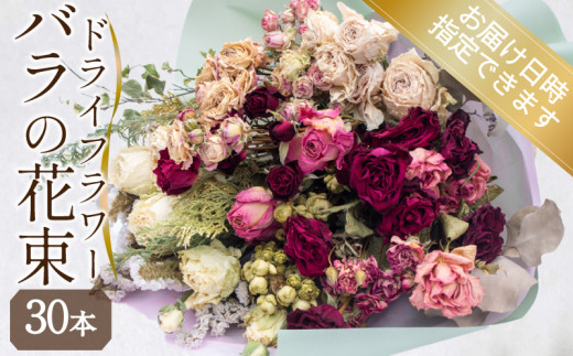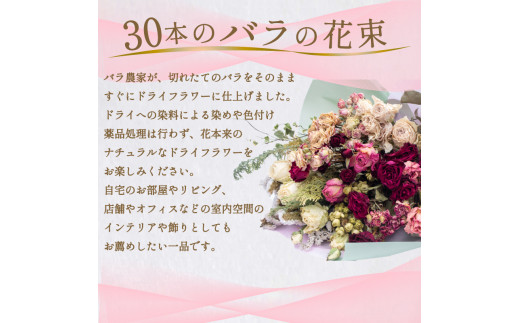 - バラ ドライフラワー 花束 30本 ( おまかせ 色 赤 白 ピンク 黄色 オレンジ ミックス ギフト プレゼント 贈答 花 フラワー プロポーズ 記念日 お祝い 自然 贈り物 植物 ローズ 産地直送 自宅用 お取り寄せ 癒やし 香り リラックス ) 下関 山口