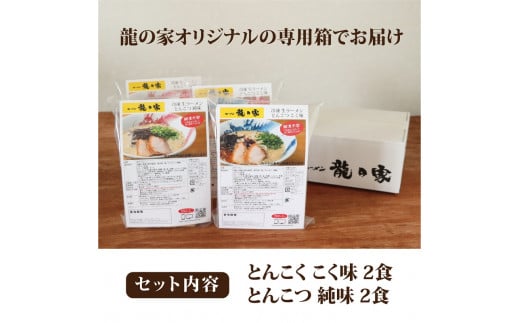 龍の家 2種類のとんこつ食べ比べセット(4食入)_とんこつラーメン 龍の家 2種類 × 2食 計 4食入 食べ比べ セット こく味 純味 豚 頭骨 水 高温 ラーメン 豚骨 100% 濃厚 スープ 力強い コク まろやか 風味 自家製 極細 ストレート麺 冷凍 福岡県 久留米 人気店 お取り寄せ お取り寄せグルメ 送料無料_Br006_V1