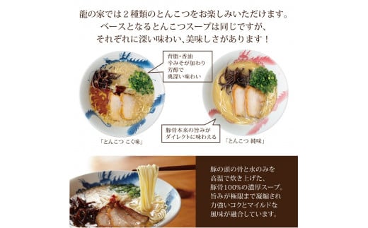 - 龍の家 2種類のとんこつ食べ比べセット(4食入)_とんこつラーメン 龍の家 2種類 × 2食 計 4食入 食べ比べ セット こく味 純味 豚 頭骨 水 高温 ラーメン 豚骨 100% 濃厚 スープ 力強い コク まろやか 風味 自家製 極細 ストレート麺 冷凍 福岡県 久留米 人気店 お取り寄せ お取り寄せグルメ 送料無料_Br006_V1