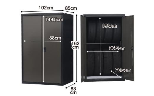 タイヤ収納庫2台用(ブラック/アッシュグレー) TBRT-162(BK/AGY) 幅102cm×奥行き85cm×高さ162cm 倉庫 タイヤ収納庫 倉庫や物置 収納庫として便利 [グリーンライフ]【145S002】