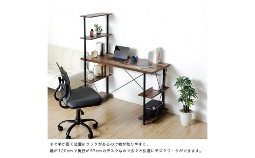 ラックデスク 組立簡単 幅120 4段 デスク パソコンデスク パソコンラック スチールラック ワークデスク 省スペース ドライバー不要ラックデスク ナチュラル AKU104390001