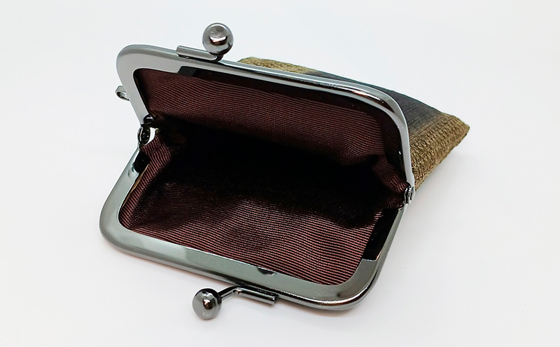 がま口ポーチS ぜんまい紬 茶系