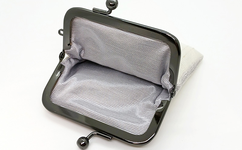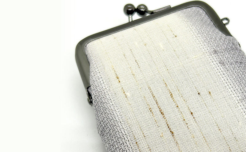 - がま口ポーチS ぜんまい紬 白色