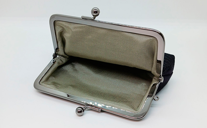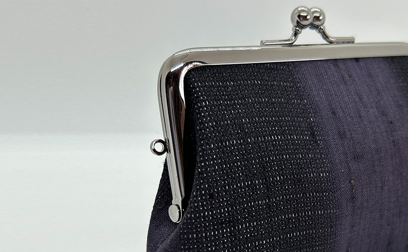 がま口ポーチM ぜんまい紬 濃紫