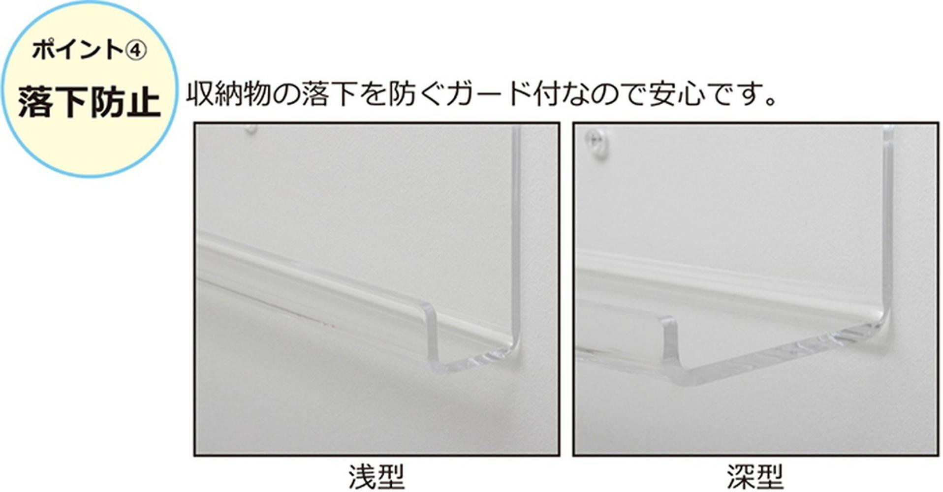 アクリリック ウォールシェルフ W60深型(2個組) 約幅60×奥行14×高さ18cm(1ヶ) 棚 ピン止め 賃貸 工具不要 壁掛け 飾り棚アクリリック ウォールシェルフ AKU1023207
