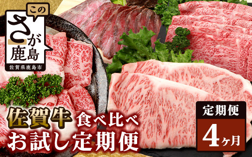 【定期便4回】佐賀牛 食べ比べ 定期便 【モモスライス 肩ローススライス しゃぶしゃぶ すき焼き サーロインステーキ ローストビーフ】 L-40