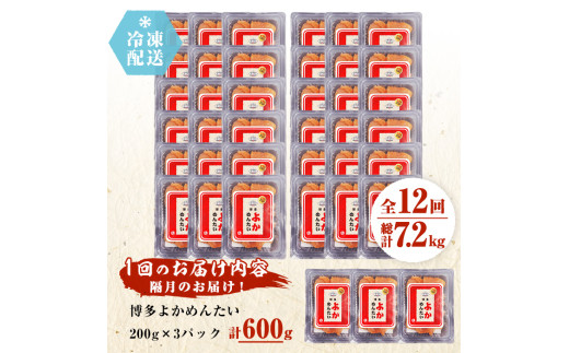<定期便・全12回(連続)><訳あり・切れ子>無着色辛子明太子 博多よかめんたい(総量7.2kg・600g×12回)めんたいこ 切子 小分け 海鮮 お土産<離島配送不可>【ksg1549】【富八商店】