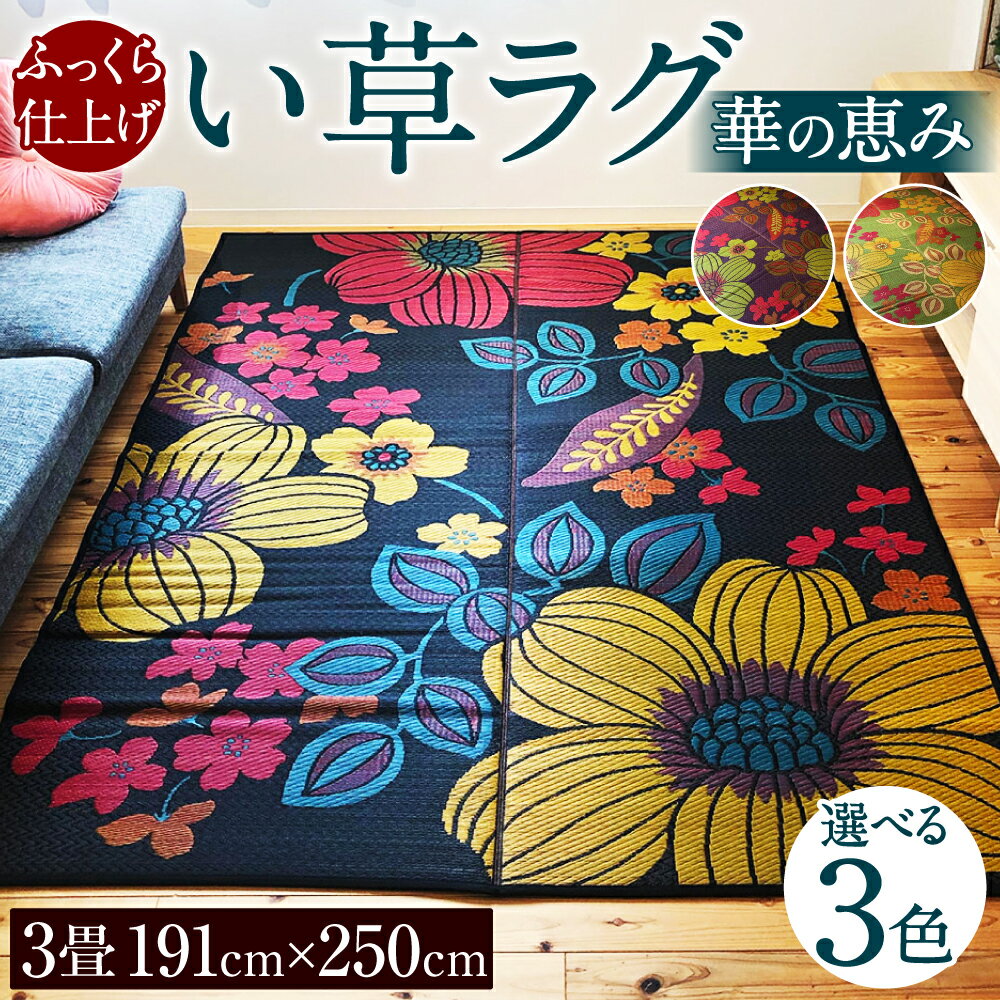 【ふるさと納税】い草ラグ 華の恵み ふっくら仕上げ 3畳 191cm×250cm い草 ラグ 3色 ブラック ブラウン グリーン フローリング いぐさ たたみ 畳 畳マット 日本製 国産 福岡県 柳川市 送料無料