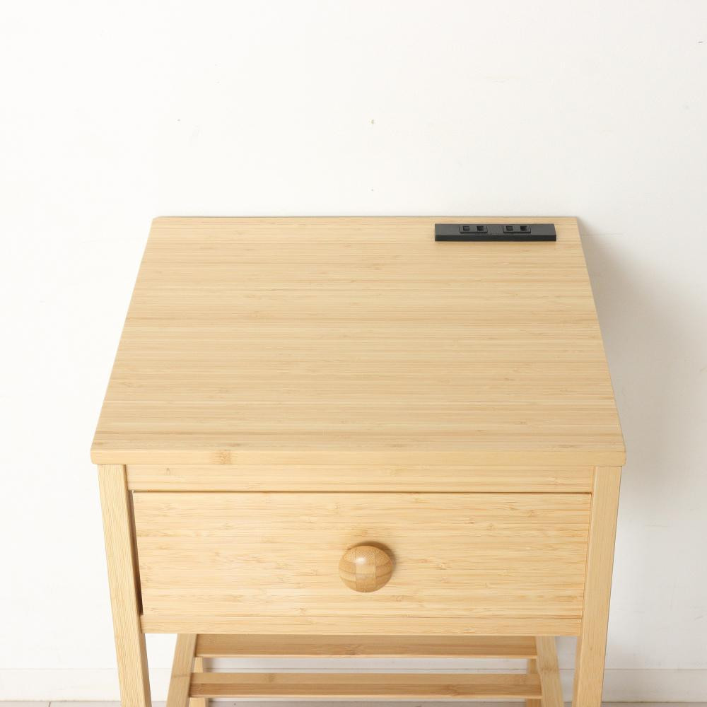 【ふるさと納税】301ナイトテーブル テイク サイドテーブル ベッドサイドテーブル 2口コンセント付き キャスター付き サイドワゴン 引き出し 1段 インテリア 木製 北欧 テイスト モダン