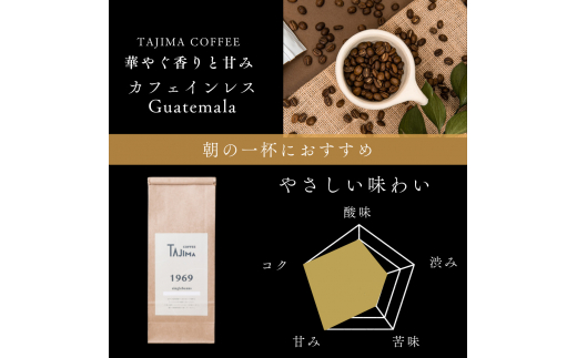 - コーヒー 粉 中挽き / Organic Guatemala コーヒー粉 500g 自家焙煎 珈琲 豆 コーヒー 珈琲 老舗 喫茶店の味 カフェインレス デカフェ ノンカフェイン 優しい味わい 朝の一杯 但馬東洋珈琲【tc-decafeGuatemala-500】【TAJIMA COFFEE 】