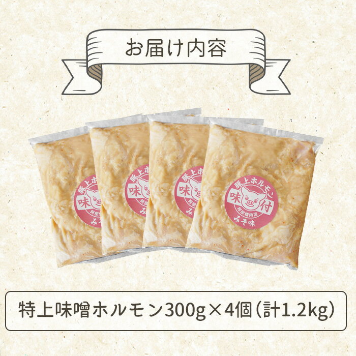 【ふるさと納税】豚上味噌ホルモン 300g 4個 計1.2kg オンライン 申請 ふるさと納税 北海道 恵庭 ホルモン 味噌ホルモン 味付き タレ 味噌ダレ 味付き肉 豚 豚肉 直腸 肉 お肉 焼肉 バーベキュー BBQ アウトドア 恵庭市【160029】