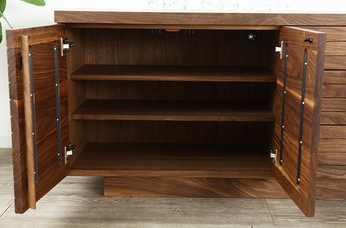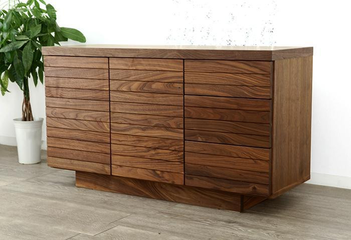 - 大川家具 ノート 120cmリビングボード 台輪 天然木ウォールナット