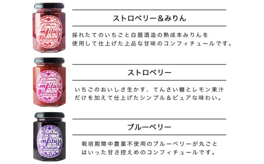 - ストロベリー&みりんコンフィチュール、ストロベリーコンフィチュール、ブルーベリーコンフィチュール 食べ比べ3個セット|フルーツ 果物 いちご 苺 ジャム セット ヨーグルト パン 朝食 朝ごはん