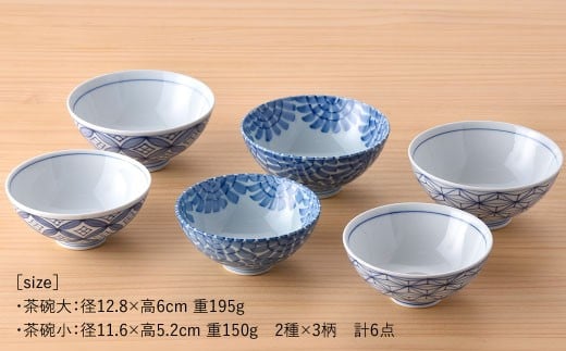 - 【波佐見焼】七宝・麻の葉・唐草 夫婦 茶碗 3ペア 6個セット 縁起のいい柄シリーズ 食器 皿 【大新窯】 [DC28]