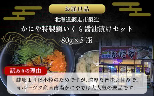 かにや特製 鱒いくら醤油漬け 80g入り5瓶 計400g【 ふるさと納税 人気 おすすめ ランキング いくら 鱒いくら 鱒イクラ ますいくら ますイクラ ます マス マスイクラ 醤油漬 いくら醤油 いくら醤油漬け ギフト 贈答 贈り物 冷凍 新鮮 セット かにや オホーツク 北海道 網走市 送料無料 】 ABAO107